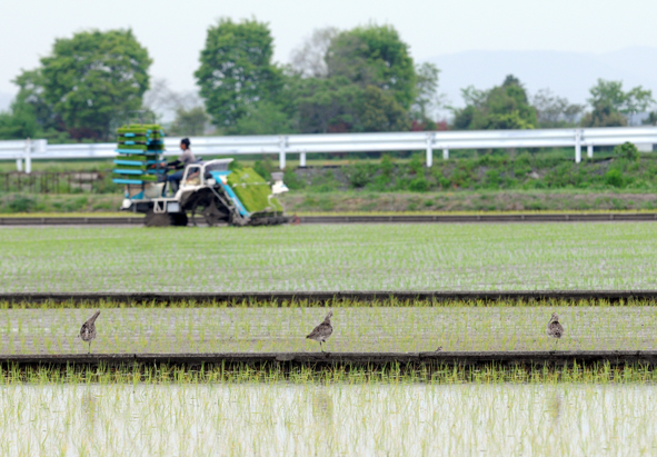 滋賀県湖北の山本山にオオワシを見に行く。オオワシが越冬のために山本山にやってくるのは今年で20年目と言う。相変わらず多くのカメラマンで賑わっていたが、当のオオワシは朝から動く事無く、多くのギャラリーは今か今かと飛ぶ瞬間を待っている。オオワシとギャラリーのすぐ横では、120羽を越すコハクチョウたちが水田で草の根を掘り起こし食事に忙しい。オオワシも飛ばず、コハクチョウも飛ばず、おそらくしびれを切らしたのだろう、一人の男性が車道からあぜ道に3メートルほど立ち入りコハクチョウを撮影し始めた。遠くから様子を伺っていると、彼はコハクチョウ摂餌シーンを撮っているのでなく彼らが飛び立つシーンを狙っている事に気付いた。ひょっとすると飛び立たせようと近づいているのかも知れない。コハクチョウ達は彼の存在を警戒して、首をあげて摂餌をやめてしまった。そして歩いて少しずつ遠ざかるコハクチョウ達、男性はなおもあぜ道から見ている。僕は我慢できずに「ハクチョウ達はあなたのことを警戒して食事をしません。あぜ道に入らず車道から観察してやってください。」とお願いする。不承不承、男性はあぜ道から車道に戻るが、なおもハクチョウの飛び立ちを撮影したいようだ。しかし警戒心を一度感じたハクチョウ達は男性の存在をいやがる様に歩いて遠ざかってしまった、中には飛び立ち移動してしまった個体もいる。車道から見ている分には、10mも離れない所で餌を摂るハクチョウ達。彼らが警戒をする距離感と対象物がはっきりとあることを知った。Photo:2017/12/10 @山本山、滋賀県