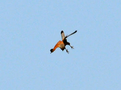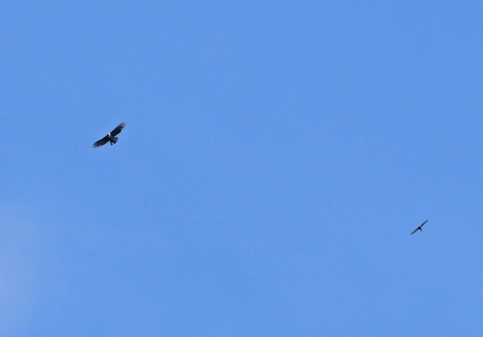 今年も秋の渡りのシーズンになった。例年いっている渡り観察のポイントに出かけた。当日の天候は申し分無かったが、風がよくないのかなかなか渡ってこない。ツバメやイワツバメの群れが上空流れ、近くの森では小さな群れのサンショウクイが行ったり来たり、彼らも渡りの準備だろう。ようやくサシバ、ハチクマがやってくるが空高い。クマタカが一羽、サシバを従えるように西の空に消えていった。クマタカは悠々と風に舞うように、一方サシバは風を切り進むように飛び去った。Photo:2017/09/09 @高島市、滋賀県