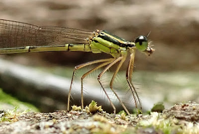 鮮やかな朱色の体に、黒い大アゴ、度々噂にされるヒラズゲンセイ(Synhoria maxillosa ツチハンミョウ科)。特にオスは、頭部と大顎が大きい。本来は、南方系の種類だが、近年、分布を広げ、本州の温暖地でも見られるようになっている。幼虫は、クマバチの巣に寄生(クマバチの幼虫の餌である花粉を食しているらしい)して育つ。成虫の体液にはカンタリジンという有毒物質が含まれ、皮膚に付くと炎症を起こす。子どもの頃、昆虫図鑑の絵を見て、正直なんだかへたくそな絵だな、こんな虫本当にいるのだろうかと思っていた。色といい、どこか体の形のバランスにも欠ける気がしてならなかったことを覚えている。だから京都御苑で初めて見た時は驚いた、目の前にその変な虫が、変なカッコしてとまっていたからだ。クマバチ♀が開ける巣孔の側に日がな1日じっと同じ格好でとまっている。その次の行動が読めない。丸一日付き合えば行動が判るかもしれない・・・ということは何となく判っているものの、まだ彼らにおつきあいしていない。Photo:2018/06/19 @京都御苑