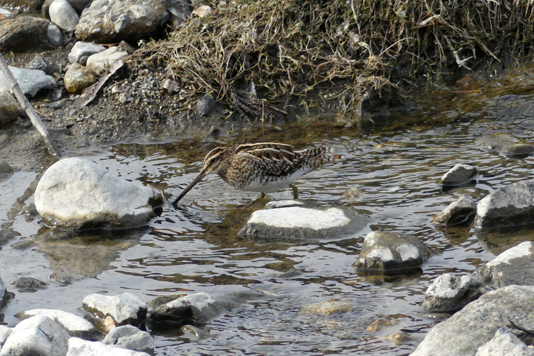 女の北帰行の日も近そうです。彼女から見れば、自分に向けられた大きな望遠レンズは黒く光る百丁の銃口か?幸いにも松葉が彼女の姿を隠してくれるのでカメ