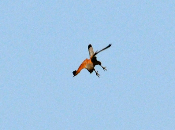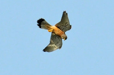 桜咲く気持ちのいい日、一羽のチョウゲンボウ(Falco tinnunculus 英:Common Kestrel)が20〜30mの上空でホバリングをして地面の獲物を探していた。時おり急降下を繰り返し、獲物を捕らえる行動が観察できる。獲物と言ってもカエルやバッタ。以前、ある動物園で飼われているチョウゲンボウ(事故で飛べなくなった個体)の一日のエサの量を聞いたことがあり、体重の10%を基準に調整をしていると聞いた。その時の個体のエサは、ウズラ肉で20gだった。トノサマバッタの標準体重は3g程、トノサマガエルなら30g前後だろうから、一日にトノサマバッタなら10匹程、トノサマガエルであれば一匹食べれば良いことになる。Photo:2017/04/14 @平城京跡、奈良市