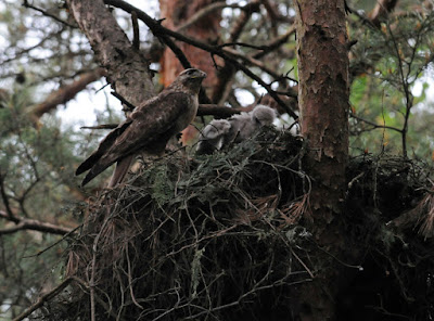 ノスリ(Buteo japonicus 英:Eastern Buzzard)の営巣観察。巣は民家から200m程離れたアカマツとカラマツの混合林、林床はササ類を基調にウルシ、コブシ、コナラ、コシアブラな